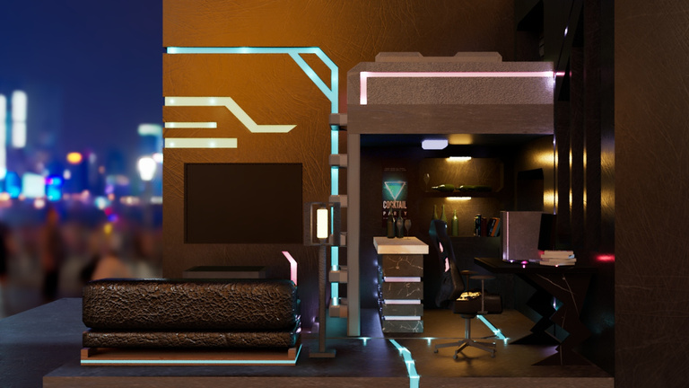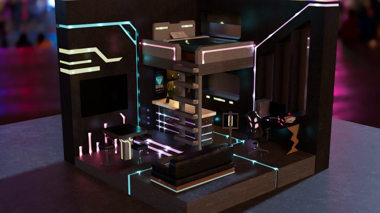 Modelling and design small room as Cyberpunk style