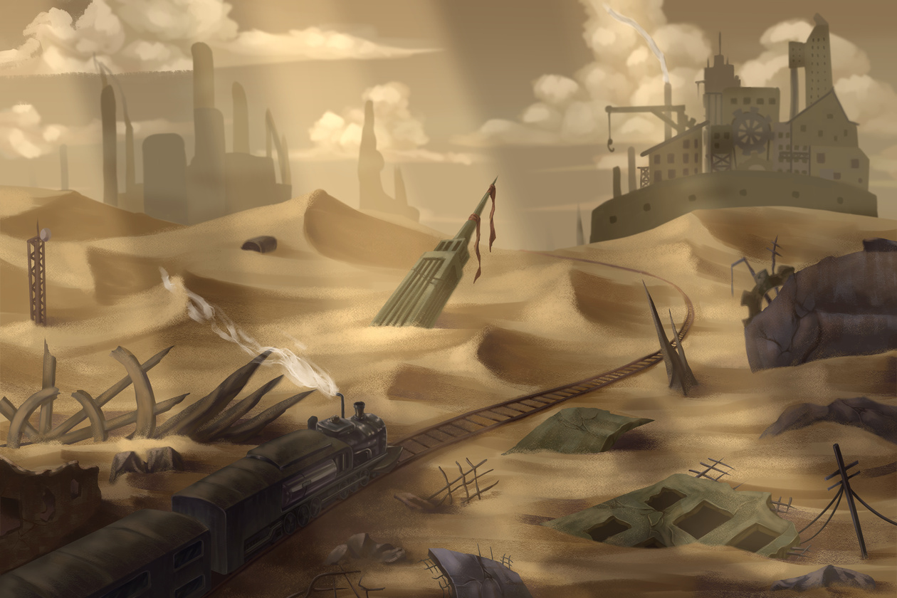 However, some of the remaining human civilizations developed steam-powered machines. and relied on the railway channels to create a network for traveling and communicating between cities.